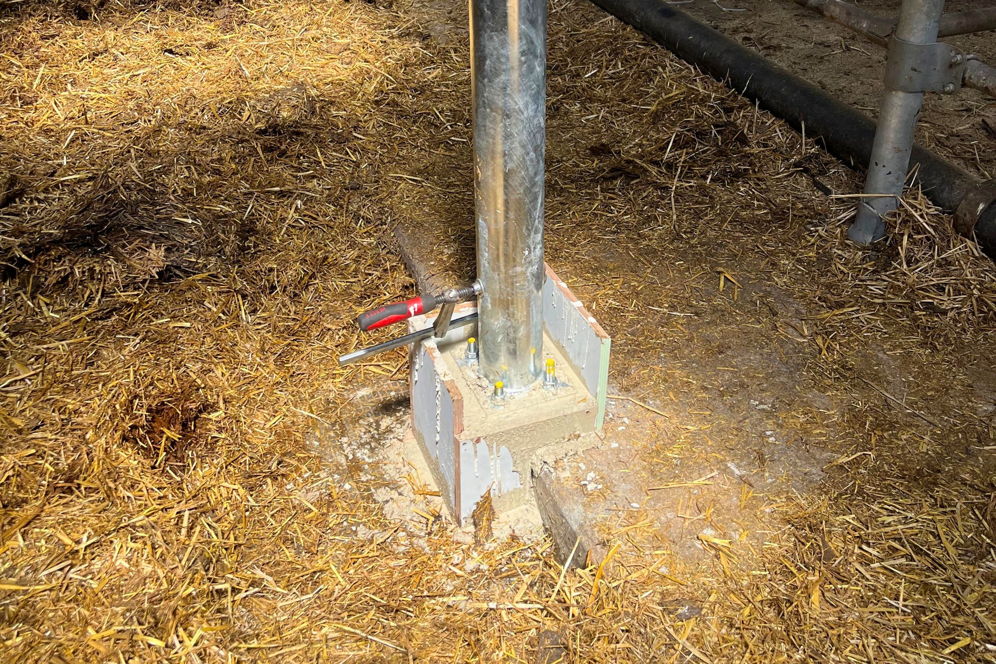 In Oudega hebben we onlangs twee kolommen in de stal verplaatst.